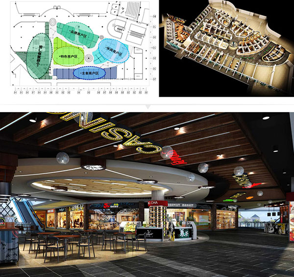 "美食廣場"有人稱之為"美食街",有人稱之為"小吃街"。 一般由眾多風(fēng)格各異的小吃店或檔口組成,滿足客戶的不同口味需求。通常采用顧客自取、自我服務(wù)方式取餐。購物中心的美食廣場由于其聚客能力強(qiáng),且有一定的規(guī)模,在商場通常被視為主力店之一。幾乎所有百貨公司和購物中心都有美食廣場的設(shè)置。美食廣場規(guī)劃設(shè)計(jì)獨(dú)具特色,裝修別具風(fēng)格,給消費(fèi)者營造一種舒適的環(huán)境。美食廣場經(jīng)營品種上絕不是千篇一律,在每個(gè)地區(qū)力求做出本地的特色,根據(jù)周邊環(huán)境和當(dāng)?shù)厝说娘嬍沉?xí)慣來選擇經(jīng)營品種,以此吸引消費(fèi)者。